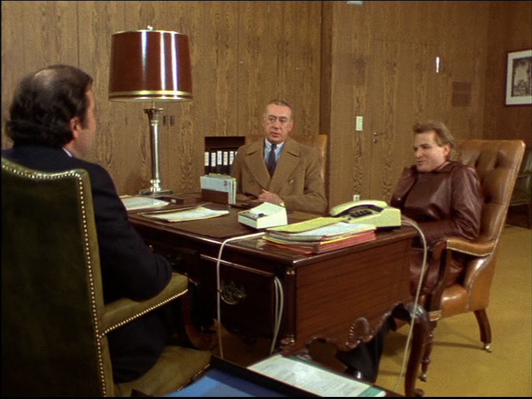 Darsteller: HORST TAPPERT Oberinspektor Stephan Derrick; FRITZ WEPPER Inspektor Harry Klein; WILLY SCHÄFER Willi Berger; ELFRIEDE KUZMANY Rotraut Liebermann; ECKHARD HEISE Rudolf Hasse; EKKEHARDT BELLE Horst Kluge; PETRA VERENA MILCHERT Hanna Wedekind; JOHANNA ELBAUER Grit Hess; DIETLINDE TURBAN Martina Busse; LAMBERT HAMEL Doktor Schumann, Rechtsanwalt; PIA HÄNGGI Ursula Berthold (als Pia Haenggi); KARL-HEINZ VON LIEBEZEIT Ulrich Schumann; TILLY LAUENSTEIN Vermieterin von Martina Busse; ROBERT ATZORN Herr Schinkel, Dozent an der Kunsthochschule; ILSE KÜNKELE "Zugehfrau" von Ulrich Schumann; BRUNO W. PANTEL Hausmeister; UNBEKANNT "P1-Hansi" Polizist am Fundort u.v.a.